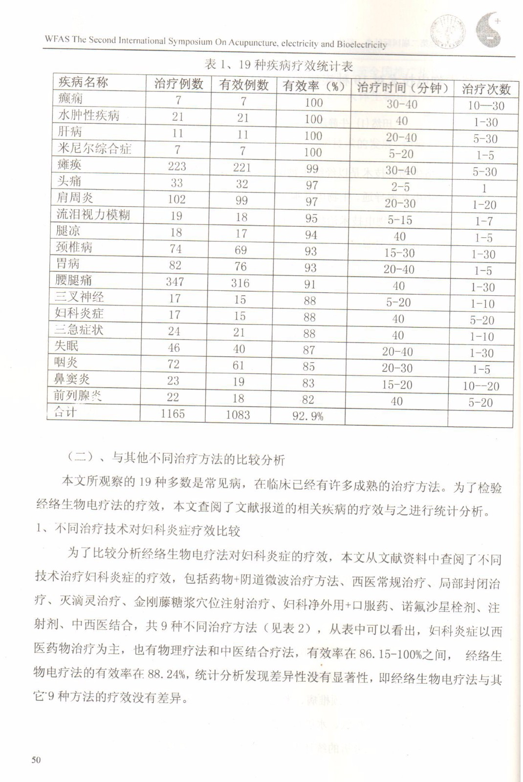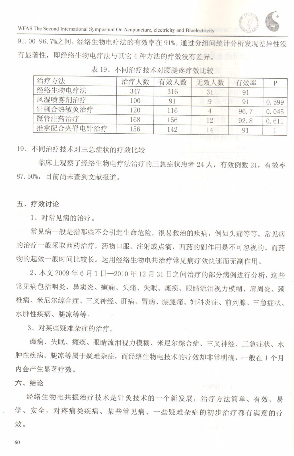 经络生物电技术对19种疾病的疗效分析