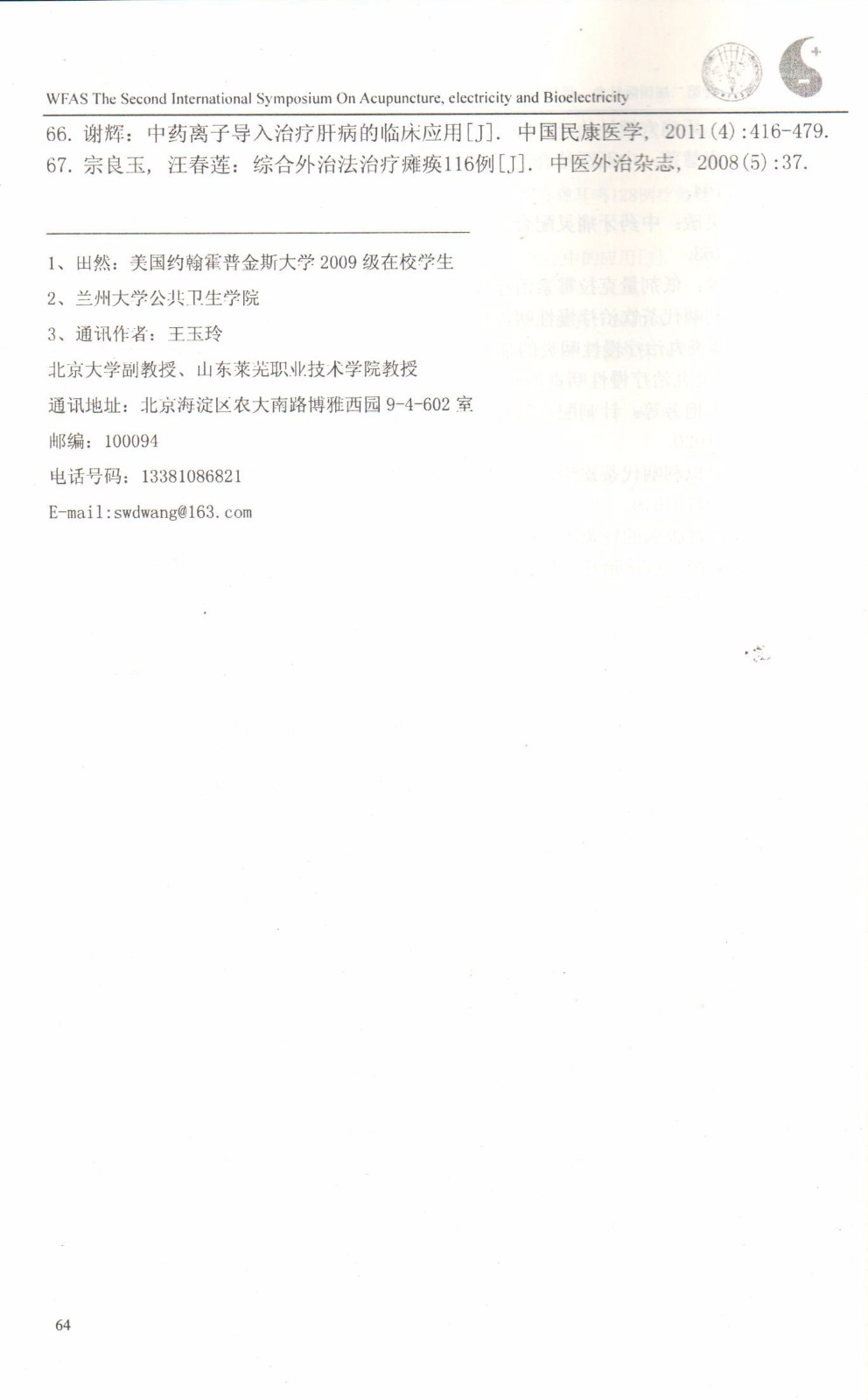 电子邮箱:swdwang@163.com
